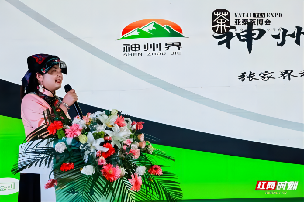 永定区人民政府副区长朱琪推介张家界莓茶。