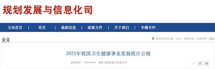 2023 年,全国医疗卫生机构总诊疗人次 95.5 亿,比上年增加 11.3 亿人次(增长 13.5%)。2023年居民平均到医疗卫生机构就诊 6.8 次。