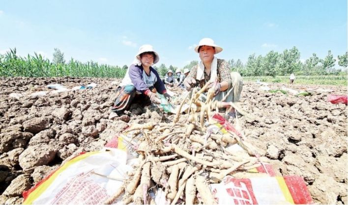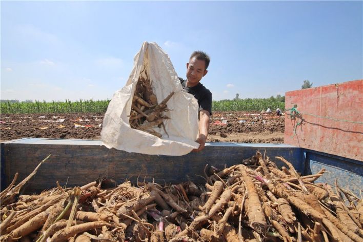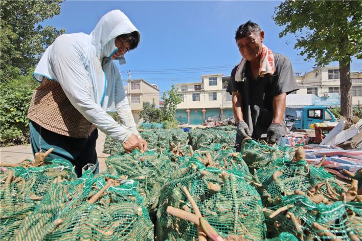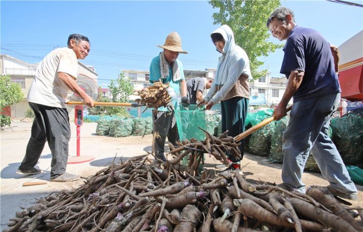 谯城区十河镇卞铺村药农正在打包白芷。